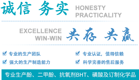 專業(yè)生產(chǎn)對(duì),苯磺酸,苯酚磺酸等磺酸類(lèi)產(chǎn)品及抗氧劑的生產(chǎn):如抗氧劑300,抗氧劑BHT等;酚類(lèi)產(chǎn)品有間苯二酚、鄰甲酚及間甲酚等